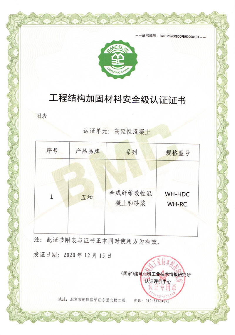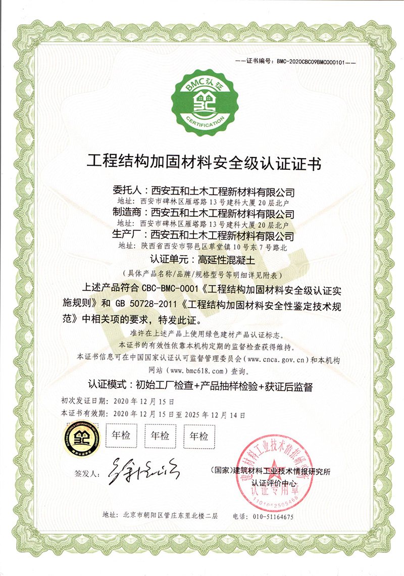工程结构加固材料安全级认证证书