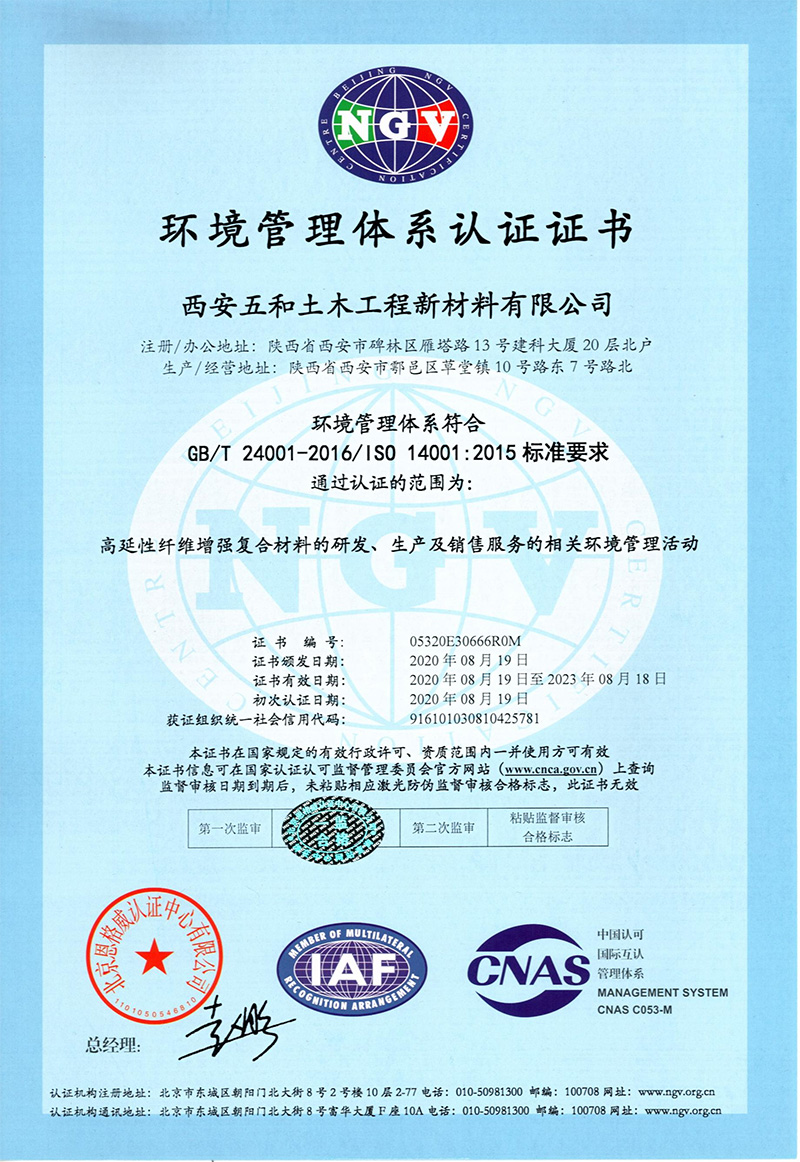 环境管理体系认证证书