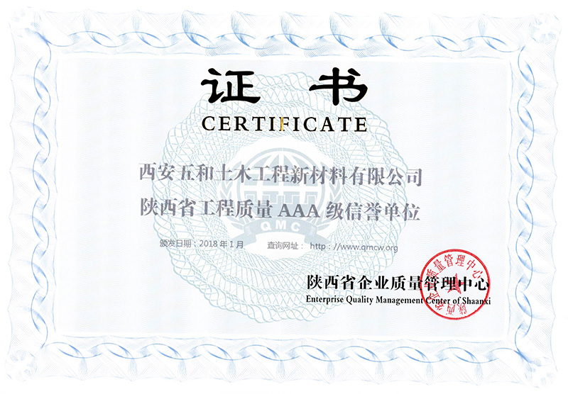 陕西省工程质量AAA级信誉单位